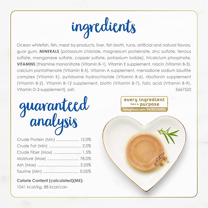 - Crafted with real ocean whitefish as the number one ingredient with a smooth cat food wet pate texture