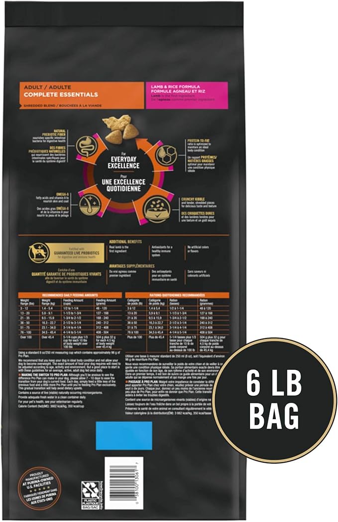 Purina Pro Plan High Protein Dog Food With Probiotics for Dogs, Shredded Blend Lamb & Rice Formula - 6 lb. Bag
