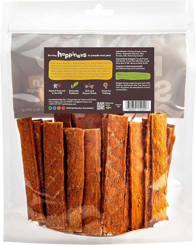 - Ingredients – Pet 'n Shape Chik ‘n Sweet Potato Strips are a great source of lean protein and sweet potato is an excellent source of fiber, vitamins, and minerals.