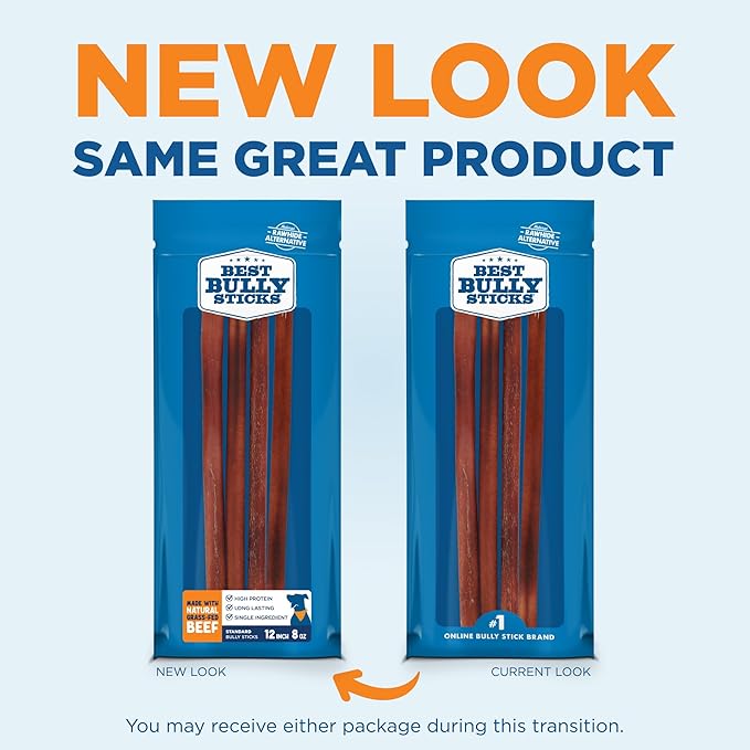 Best Bully Sticks 12 Inch Bully Sticks - 8 oz (Pack of 1) - Natural Grass-Fed, Grain and Rawhide Free, Perfect for Medium or Large Canines