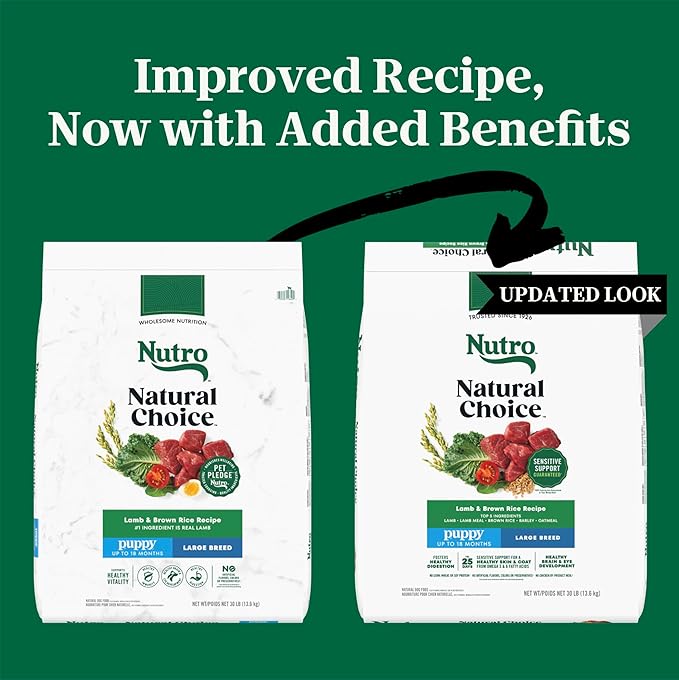 - Digestive Health Support: Nutro Natural Choice Large Breed Puppy Food Dry, Lamb & Brown Rice Recipe helps improve nutrient absorption and overall gut health with beet pulp, a natural prebiotic fiber, and highly digestible proteins