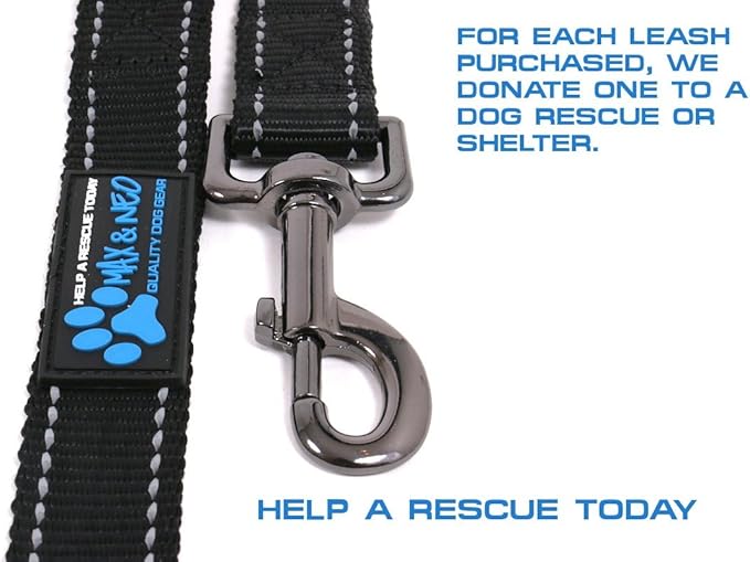 Max and Neo Reflective Nylon Dog Leash - We Donate a Leash to a Dog Rescue for Every Leash Sold (Black, 6 FT)