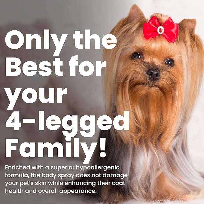 - Silk Protein-Enriched: Formulated with silk protein and botanical extracts, this body spray also works as a cat and dog cologne. Our Scentament Spa is available in an 8-ounce bottle and is safe for dogs, cats, puppies, and kittens (over 12 weeks old).