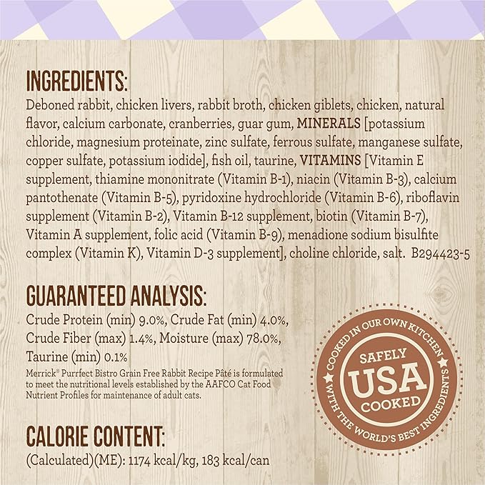 - Merrick Purrfect Bistro Grain Free Wet Cat Food Rabbit Recipe Pate