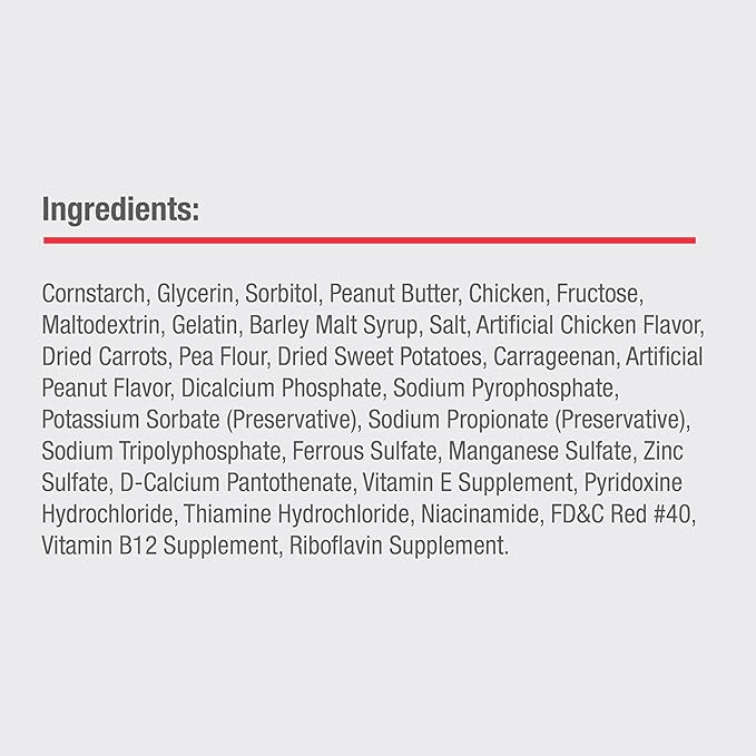 - MADE WITH REAL PEANUT BUTTER & CHICKEN: These 100% delicious chews are made with real peanut butter and chicken for a scrumptious taste dogs can’t resist.