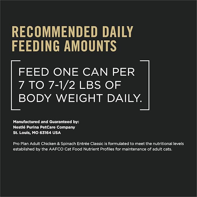 Purina Pro Plan Grain Free Pate Wet Cat Food, Complete Essentials Chicken and Spinach Entree Classic - (Pack of 24) 5.5 oz. Cans