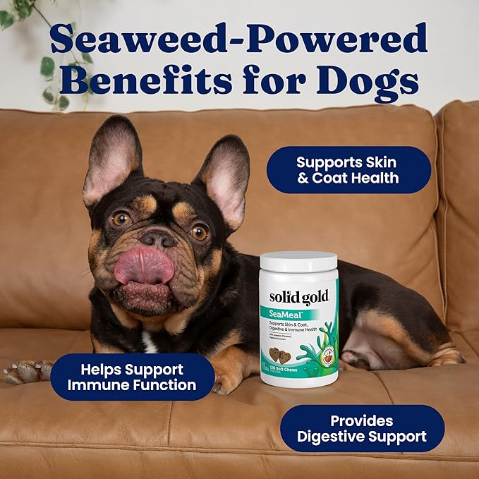 Solid Gold Cat & Dog Multivitamin Chews - Kelp, Omega 3 & Vitamins for Dental, Digestive, Immune, Skin & Coat Health - Multi Vitamin for Dogs & Cats - Sea Kelp Based Soft Chew for All Ages - 120ct