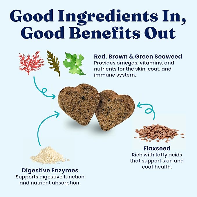 - Immune System Booster – With red, green & brown sea kelp for dogs & cats, these chews provide dog vitamins & minerals that help support immune function, wellness & vitality. A great multivitamin for dogs, cat multivitamin & senior dog supplement