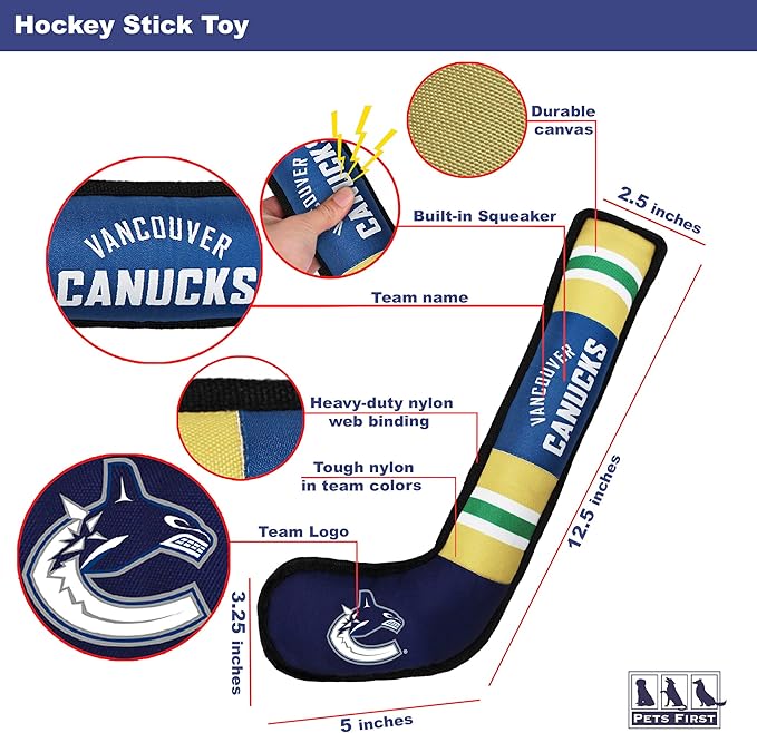 Pets First NHL Vancouver Canucks Stick Toy for Dogs & Cats. Play Hockey with Your Pet with This Licensed Dog Tough Toy Reward!