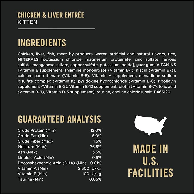 - Purina Pro Plan kitten wet food made with 25 essential vitamins and minerals, including vitamin A and taurine, an amino acid, to support healthy vision