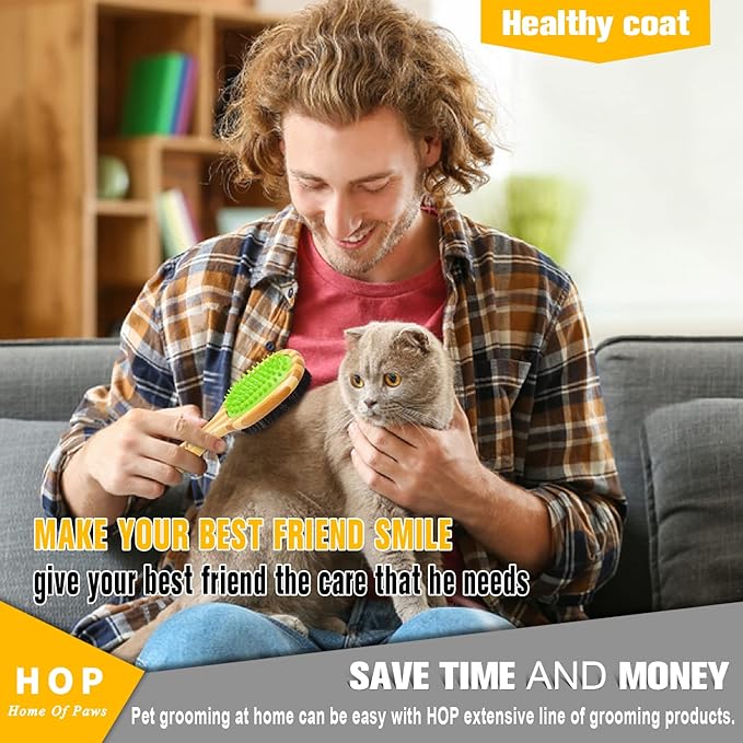 - Two sided pet brush two in one dog hair brush. One side of the silicone head is used for hair removal and massage. The side of the brush can remove loose hair and debris on the surface. It is suitable for cats or dogs of all types and sizes. The affordable pet comb can help you save the cost of your pet and reduce the time you spend cleaning your pet.
