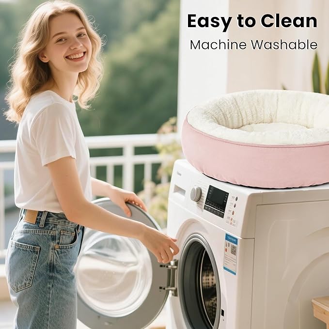 Love's cabin Round Donut Cat and Dog Cushion Bed, 20in Pet Bed for Cats or Small Dogs, Anti-Slip & Water-Resistant Bottom, Super Soft Durable Fabric Pet Beds, Washable Luxury Cat & Dog Bed Pink