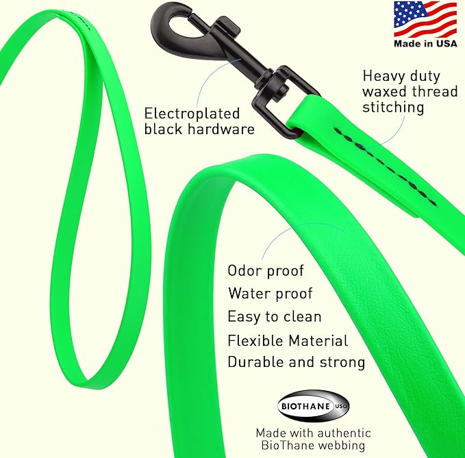 - Made in the USA from the highest quality materials, our Biothane Dog Leash comes in your choice of 26 stylish colors; 2 feet, 4 feet and 6 feet lengths; and 3 widths, ensuring that there is a suitable lead for any dog breed.
