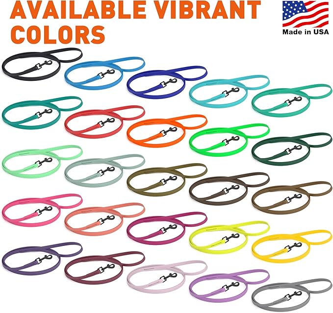 - Made in the USA from the highest quality materials, our Biothane Dog Leash comes in your choice of 26 stylish colors; 2 feet, 4 feet and 6 feet lengths; and 3 widths, ensuring that there is a suitable lead for any dog breed.