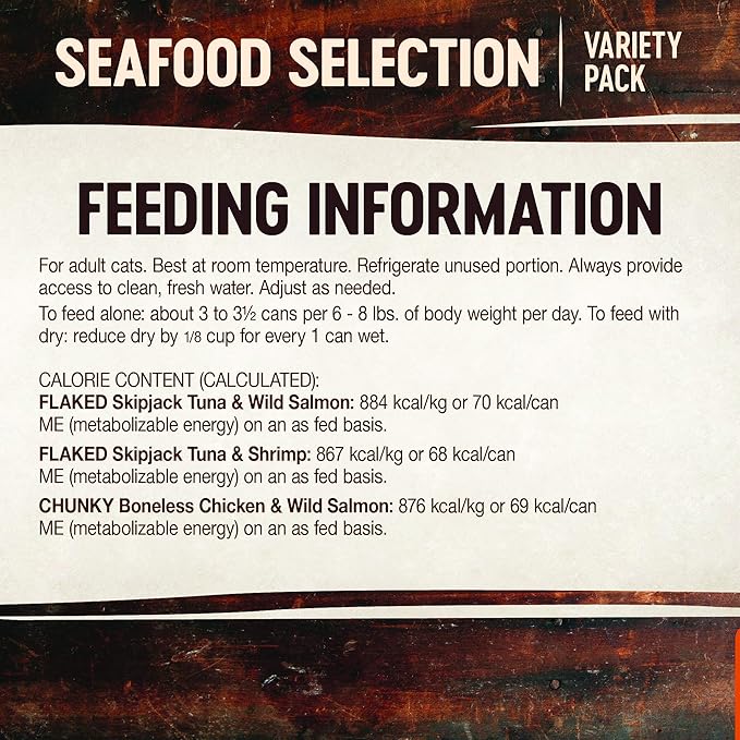 - CHUNKY SEAFOOD IN SAUCE: This gourmet cat food naturally delivers the variety your cat craves; each protein rich recipe features delicate shreds of real meat in a delicious sauce