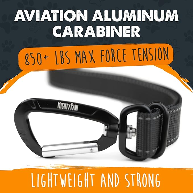 - Aircraft-Grade Aluminum Carabiner: Built to withstand over 850 lbs of force, the durable aviation aluminum carabiner ensures maximum safety. The tangle-free swivel clip keeps your dog secure and comfortable without getting tangled!