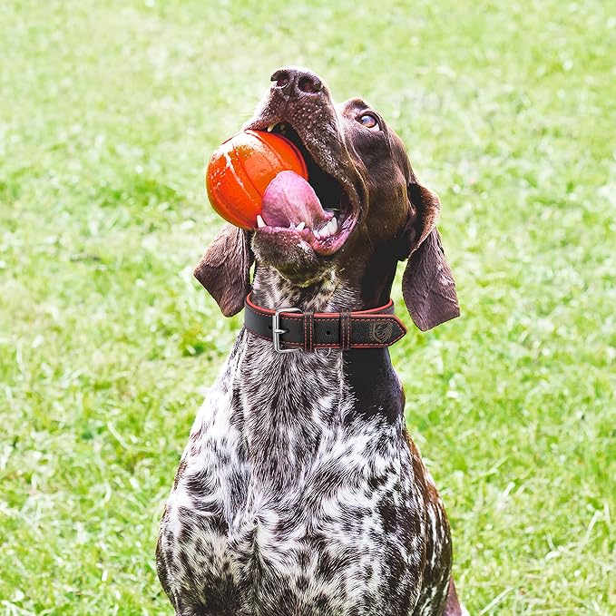 Riparo Adjustable Leather Dog Collar - Heavy Duty Wide Dog Collar for Small, Medium, Large and Extra Large Dogs with Dog Tag Holder (XXL: 2” Wide for 24”-29” Neck, Black/Red Thread)