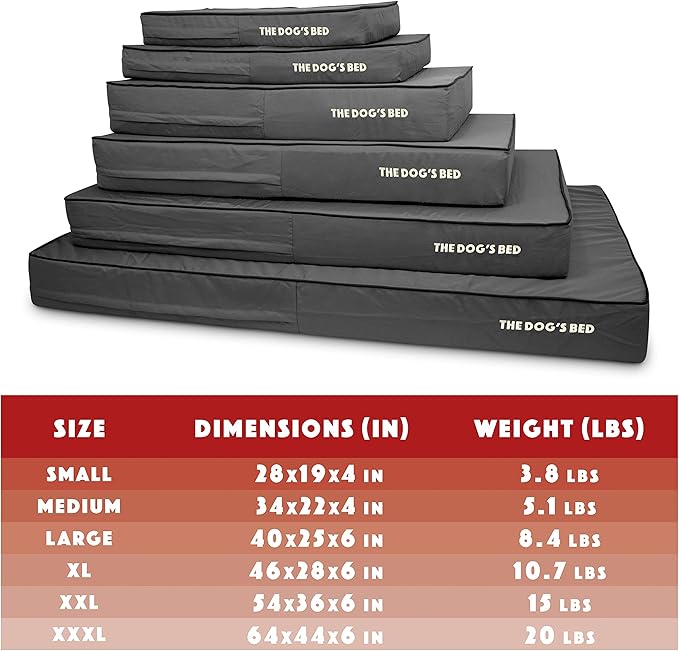 - Large Grey with Black Trim (Easy Clean Cover) 40x25x6” waterproof orthopedic dog bed. Solid 2” high density, orthopedic memory foam over a solid 4” base of high stability support foam with covers designed so that your bed fits your home decor seamlessly and your dog can stay close to your family