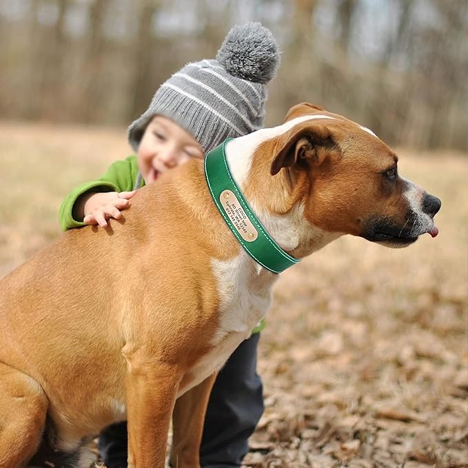 Didog Genuine Leather Dog Collars with Engraved Nameplate, Personalized Soft Leather Dog Collar with Custom ID Tag, Brown/Green/Red for Small Dogs (M,Green)