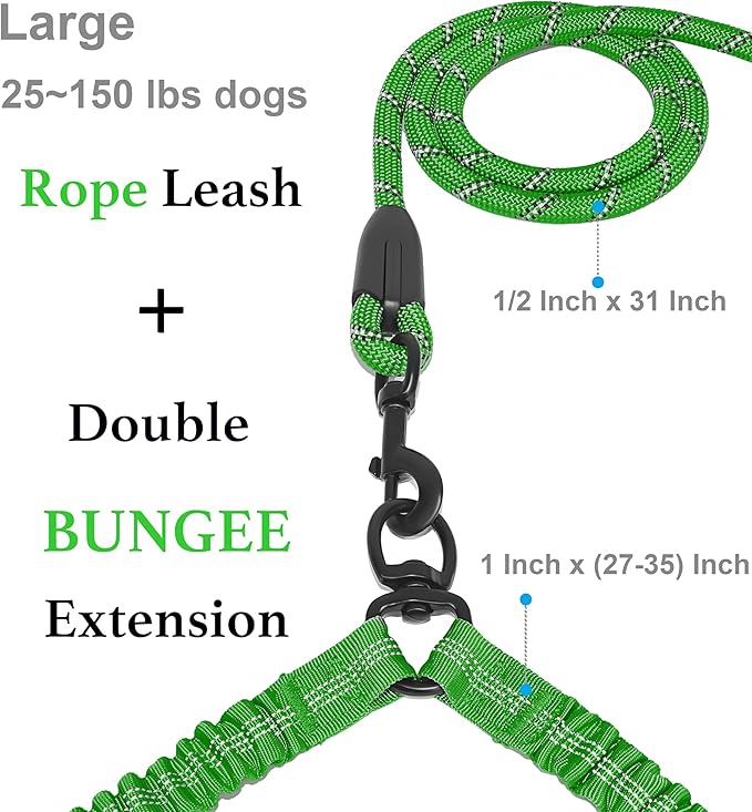 - The iYoShop Double Dog Leash Advantage: 31 inch rope leash + double bungee extension (20 inches - 35 inches)