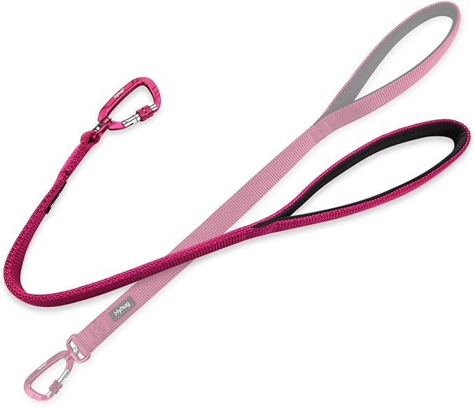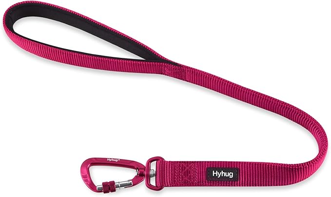 Hyhug Pets 24” Nylon Sturdy Short Leash with Neoprene Soft Handle and Lightweight Aviation Aluminium Clip Lead- for Large Medium Dogs Daily Walking and Training. (24 Inches, Rose Red)
