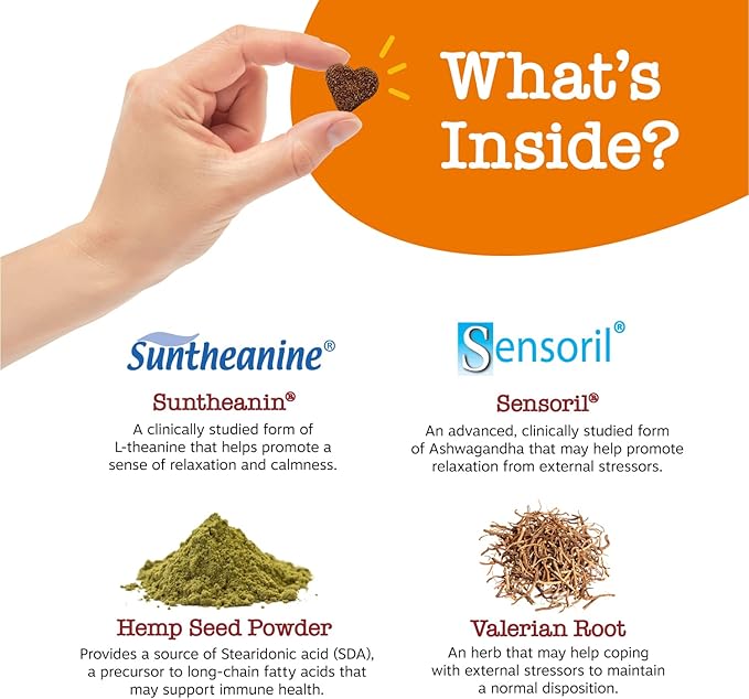 - Plus Sensoril Ashwagandha – At 25 mg per chew, this advanced clinically studied form of Ashwagandha can help your canine by promoting a sense of relaxation