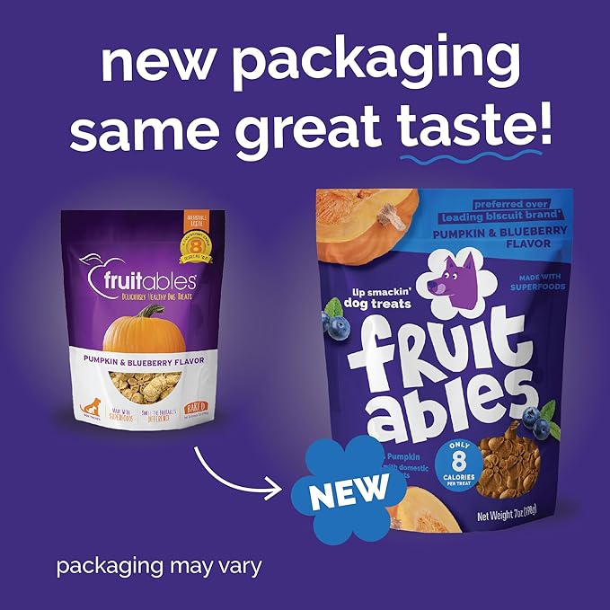 Fruitables Baked Dog Treats, Healthy Pumpkin Treat for Dogs, Low Calorie & Delicious, No Wheat, Corn or Soy, Made in the USA, Pumpkin and Blueberry Flavor, 12oz