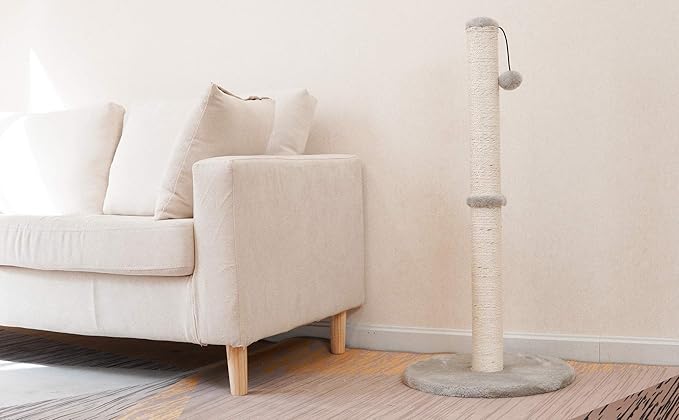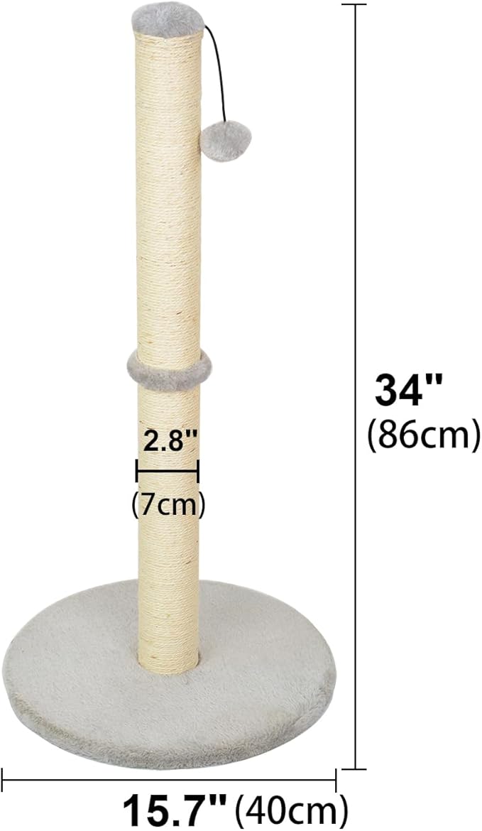 Kazura 34" Tall Cat Scratching Post, Cat Post Scratcher with Sisal Rope and Base Covered with Soft Plush,Cat Scratcher for Kittens(34 in Tall)