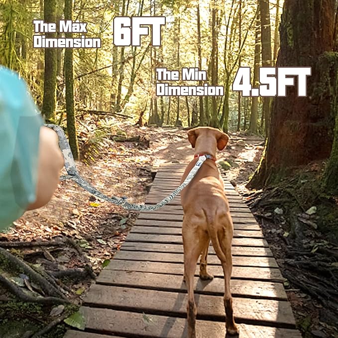 AUROTH Dog Leash Large Dogs, Heavy Duty Dog Leash Bungee, No Pull Leashes for Shock Absorption, Grey Camo Dog Training Leashes for Medium Large Breed Dogs 6FT, 2 Padded Handles