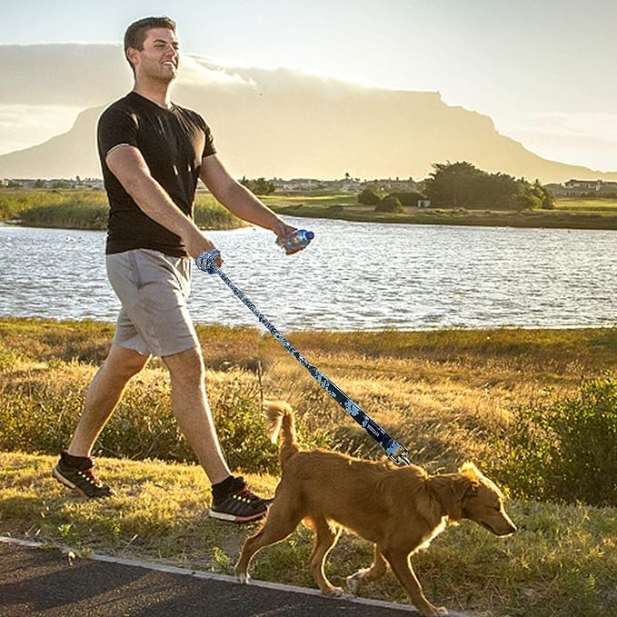 AUROTH Heavy Duty Dog Leash - Bungee, No Pull for Shock Absorption, Blue Camo, 6FT, 2 Padded Handles