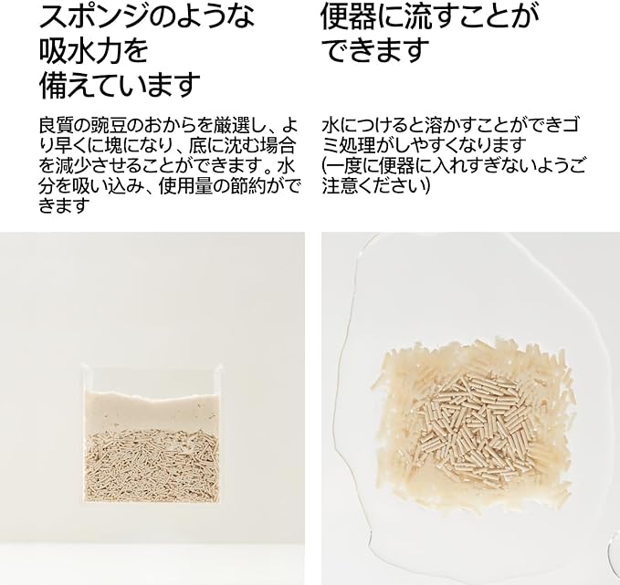 - 【Selected Quality Pea Dregs】Sponge-Like Water Absorption Performance.Faster Clumping and Lower Possibility of Touching a Cat Litter Box Bottom.Sufficient Water Absorption and Less Consumption.