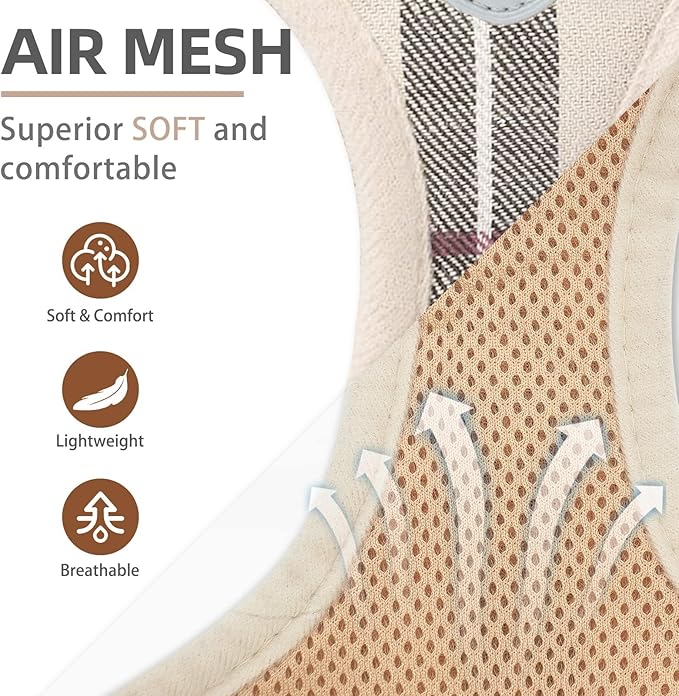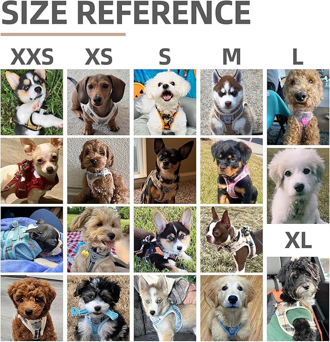 - [COMFORTABLE MATERIAL, DAILY WALKING, FOUR SEASONS WEARING] - The harness is made of durable polyester, and it's adopted with an air-mesh design. The whole harness is very soft, lightweight, and breathable. Even if your dog wears it all day, he won't feel any discomfort. For daily walking or running, it is a very easy thing to do. Besides, this is a four seasons harness, it keeps the dog cool on hot days and keeps the dog warm on cold days