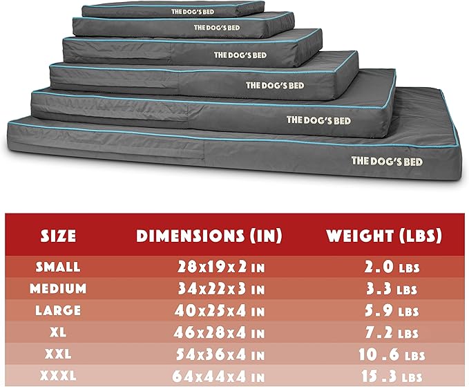 - XXL Grey with Blue Trim (Easy Clean Cover) 54x36x4” waterproof orthopedic dog bed. Solid 2” high density, orthopedic memory foam over a solid 2” base of high stability support foam with covers designed so that your bed fits your home decor seamlessly and your dog can stay close to your family