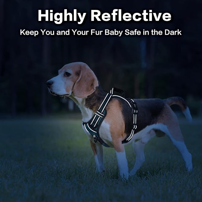 PoyPet No Pull Dog Harness, No Choke Front Clip Reflective Dog Vest with Soft Padded Vertical Handle, 3 Leash Attachments for Small Medium Large Dogs (Tumalo Teal,XL)