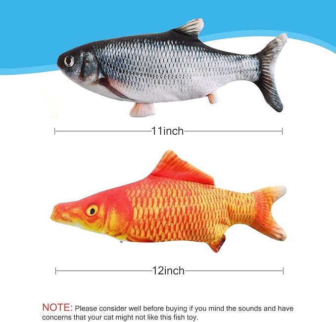 - 🐟 Interactive Cat Toy - A floppy fish cat toy with a built-in touch sensor. When your cat touches the toy, the cat fish toy will automatically waggle and make a sound, attracting your cat to play and kick; if not touched in a while, the flopping fish will turn into "sleep" mode(★Notice: Charge, turn on the switch and then slowly move the tail for operation the first time you use it).