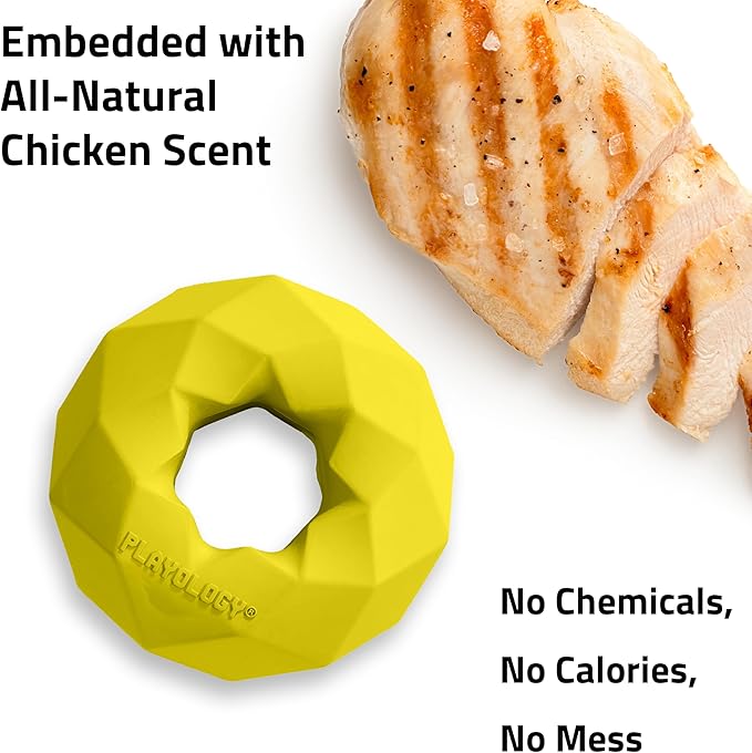 - MEET THE CHANNEL CHEW RING BY PLAYOLOGY: Featuring a durable, faceted outer shell and a hollow inner channel, the Channel Chew Ring offers a unique chewing sensation for Moderate chewers of all ages. Thanks to our Encapsiscent Technology, this toy is embedded with an all-natural Chicken scent that will keep your pup engaged and playing 7x longer than unscented toys. The Jumbo size is ideal for dogs 50 lbs and up.