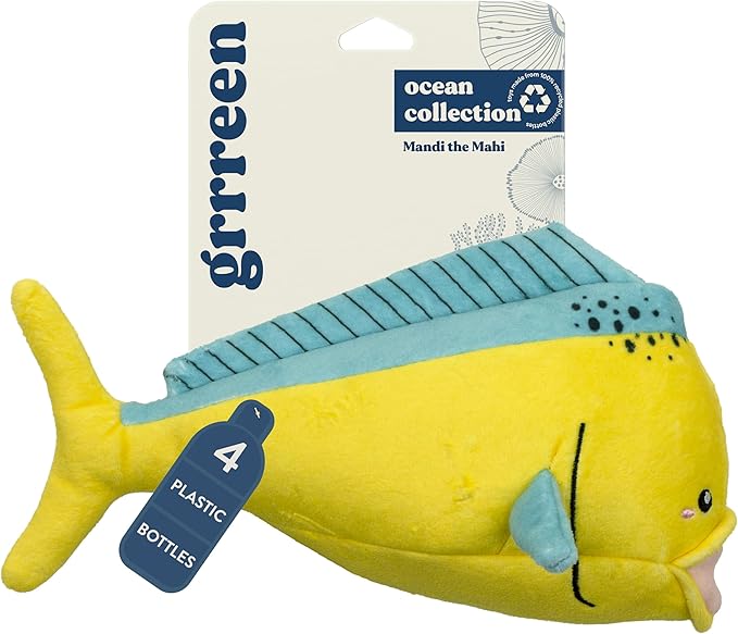 Ocean Collection Dog Toys | Jumbo Sized Mandi The Mahi Mahi | Cute, Durable, & Sustainable Plush Chew Toys for Dogs 50 lbs & up | Eco Friendly & 100% Recycled Materials