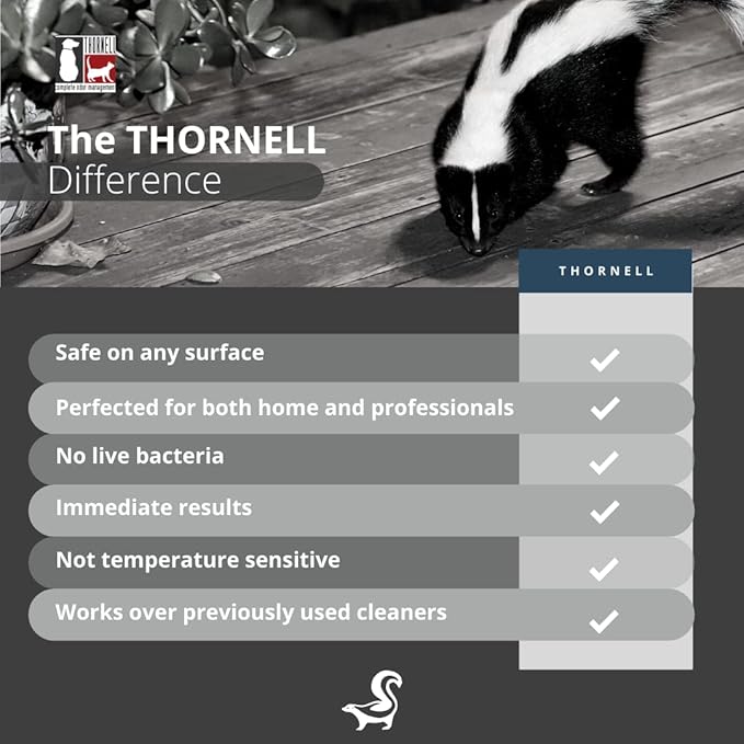 - Safe For Dogs, Cats, and Small Pets: No need to fear, pets and children can safely be around areas treated with Skunk-Off Shampoo skunk odor remover for house immediately after use. All Thornell products are safe for use on any surface.