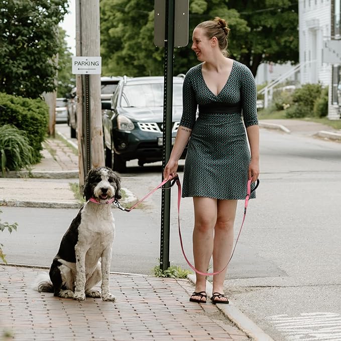 Fida 5 FT Heavy Duty Dog Leash with 2 Comfortable Padded Handles, Traffic Handle & Advanced Easy Snap Hook, Reflective Walking Lead for Large, Medium & Small Breed Dogs, Pink