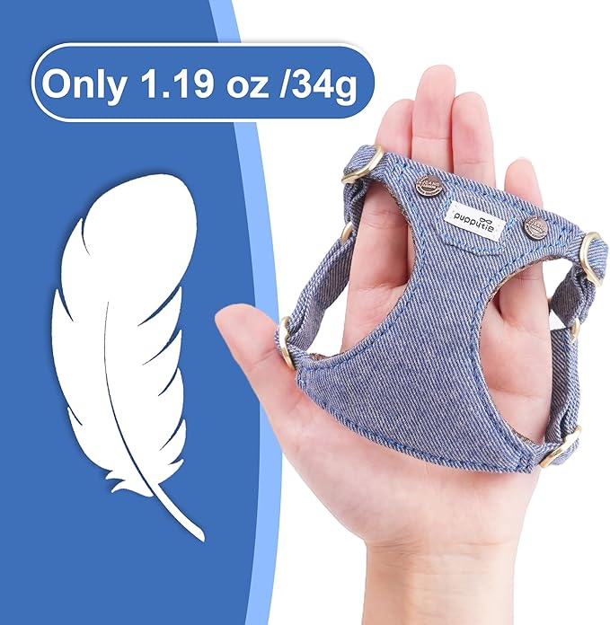 Puppytie No Pull xs Dog Harness with Multifunction Dog Leash,Soft Adjustable No Choke Escape Proof Pet Harness Vest,Denim Light Blue,XXS