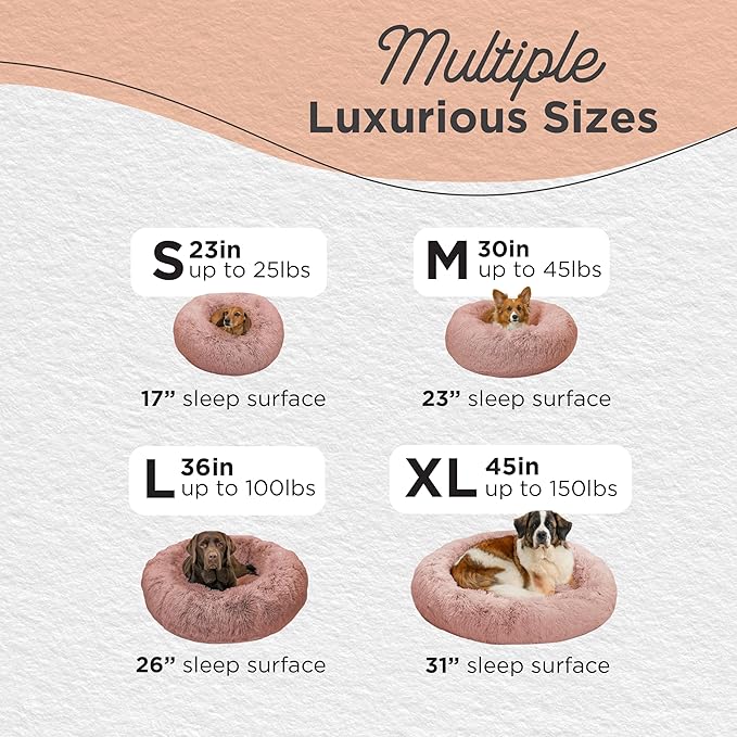Best Friends by Sheri Original Calming Donut Dog and Cat Bed, Shag Faux Fur, Dusty Rose, (36in x 36in) - Anxiety Relief for Pets Up to 100 lbs