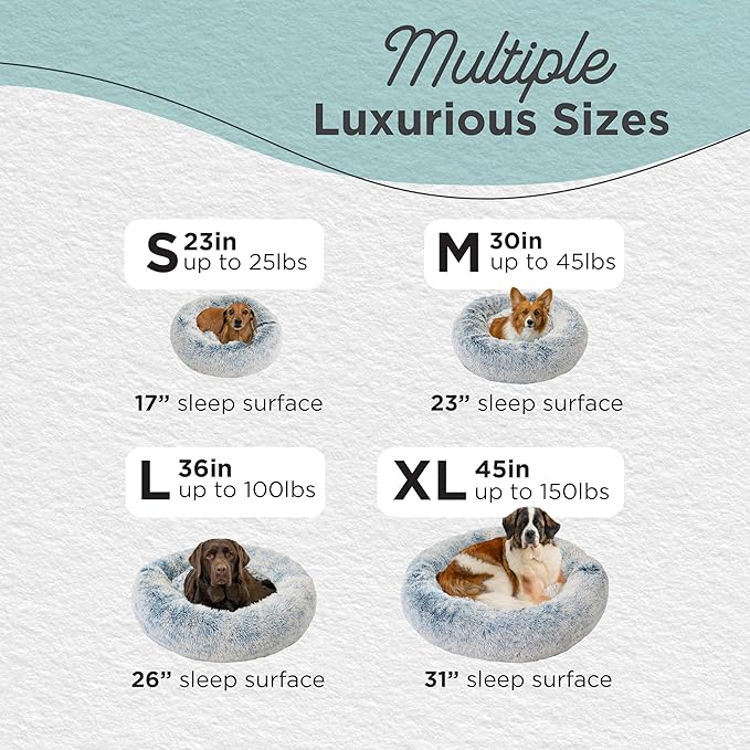 - Calming Dog Bed: 45-inch donut cuddler provides a cozy haven to help soothe anxiety and stress in extra large dogs up to 150 lbs; ideal for breeds such as Bernese Mountain Dog, Saint Bernard, Newfoundland, Bullmastiff, etc