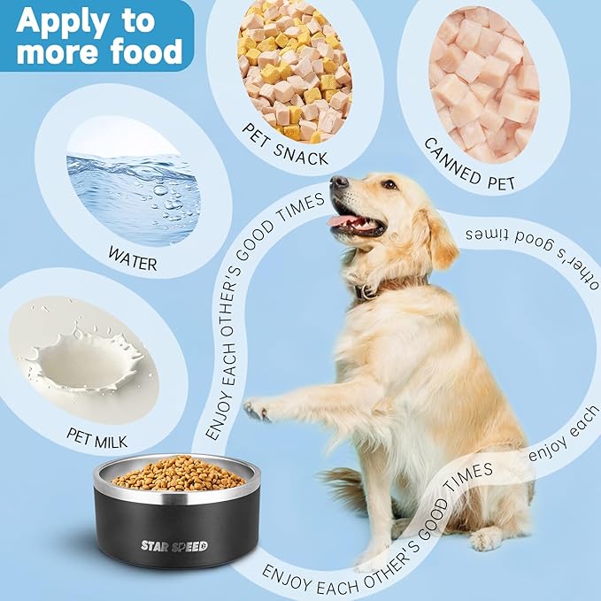 - 【Non-slip and No spill】 StarSpeed dog water bowls are weighted dog bowls with non-slip rubber rings. These designs prevent dog bowls from slipping and food and water spills. This feature is especially beneficial when using it as a dog food bowl or a large dog bowl