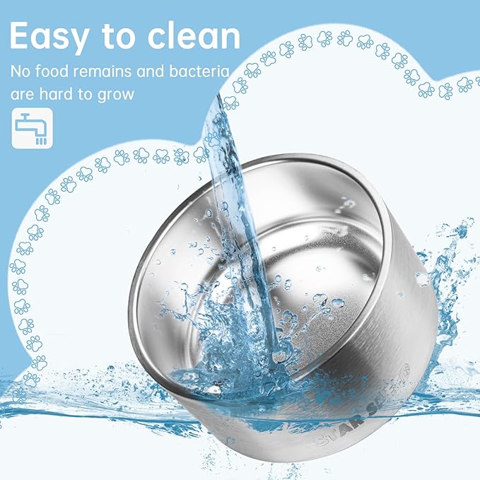 - 【Easy to Clean】The stainless steel dog water bowl uses polishing technology to create a smooth surface. These crafts can help customers to clean easily. Dishwasher safe and soft towel wash. These metal bowls are perfect for dogs, cats, rabbits or other animals