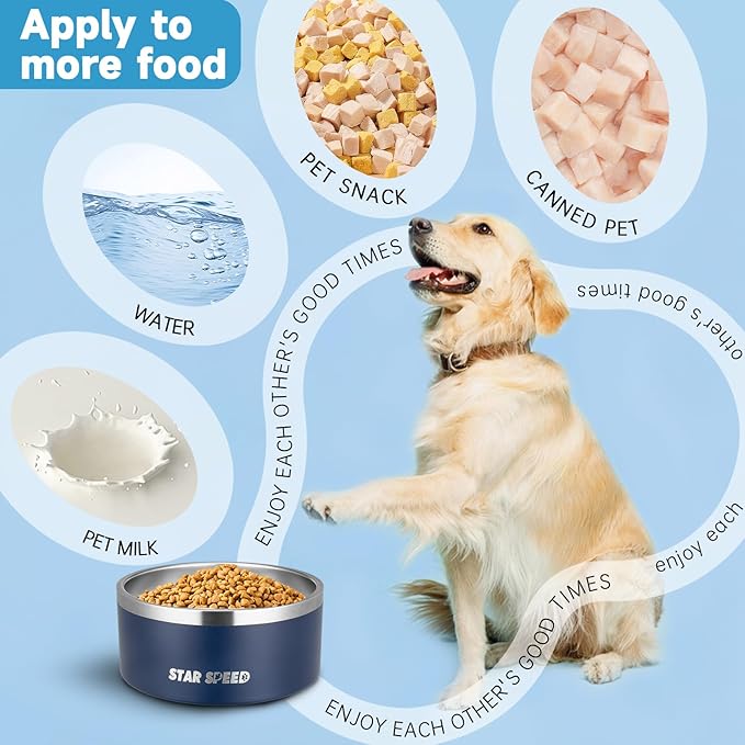 - 【Size and Capacity】The insulated dog bowls have 24 oz, 42oz, 64oz,100oz or 200oz for your choice can meet the food demands of different types of dogs. This large dog bowl comes with colorful options and attractive designs