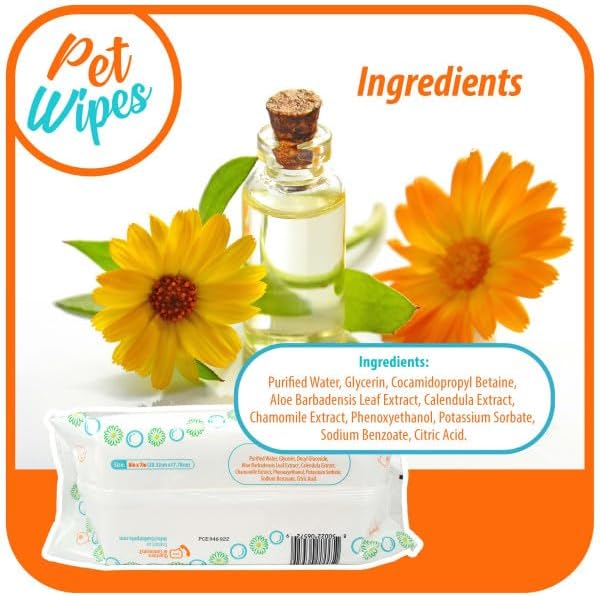 - Everyday cleansing wipes with natural ingredients approved for sensitive skin pets. Does NOT contain Alcohol or other elements that can cause irritation