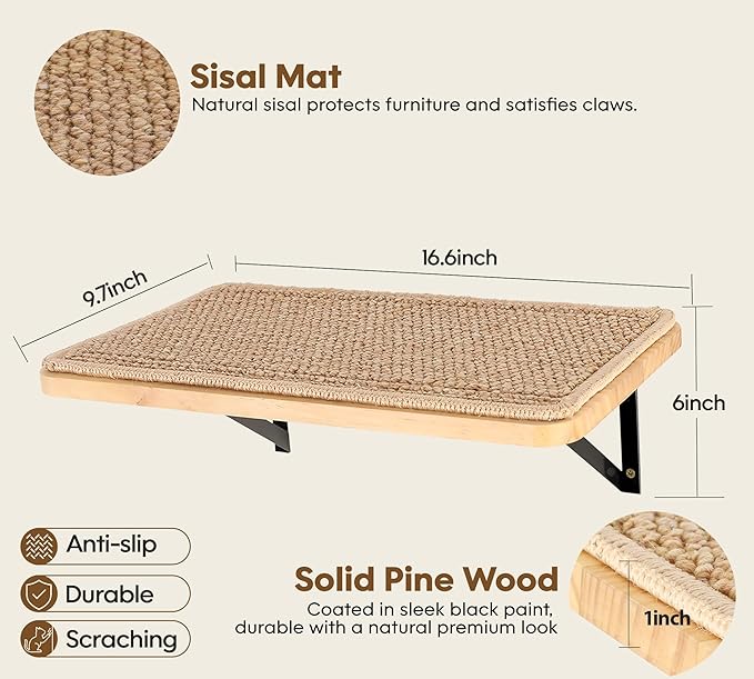- GIFTS FOR CAT'S LOVERS - The jute cat scratching shelves are made of 100% natural pine and swordsy rope for scratching and playing, the sisal smell is attractive to cats and is a healthy cat furniture for cats. It's safe to your cat when you use our cat tree shelves. Note: Natural wood, each one with slight differences.