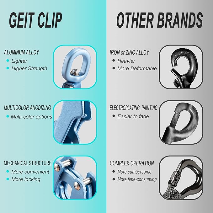 - 【Automatic Closing Frog Clip】- The buckle is made of aluminum alloy, anodic oxidation process is adopted, strong and durable. Quick release and locking dog collar clip while holding tight under strong pull. The 360° swivel ring can prevent the belt from tangling.