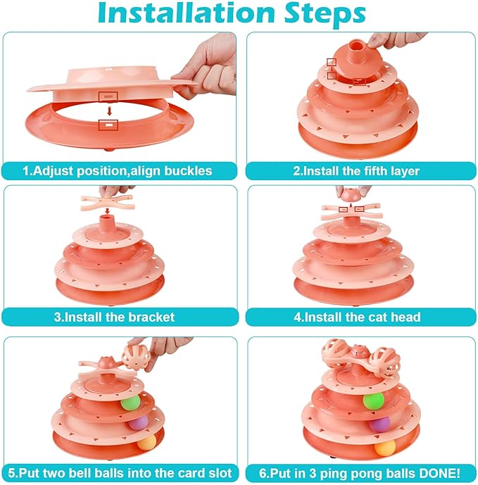 - Detachable 4 Level: Multi-level durably turntable interactive cat toy with cute cat head shape on the top level. Fun to entertain your cat for hours.