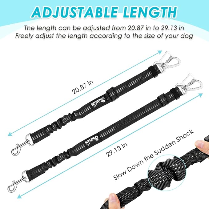 SlowTon Dog Seat Belt Harness for Car, Dog Car Harness Adjustable Mesh Breathable & Dog Seatbelt Safety Tether with Elastic Bungee for Small Medium Large Pets(Light Blue, Double Clip, L)